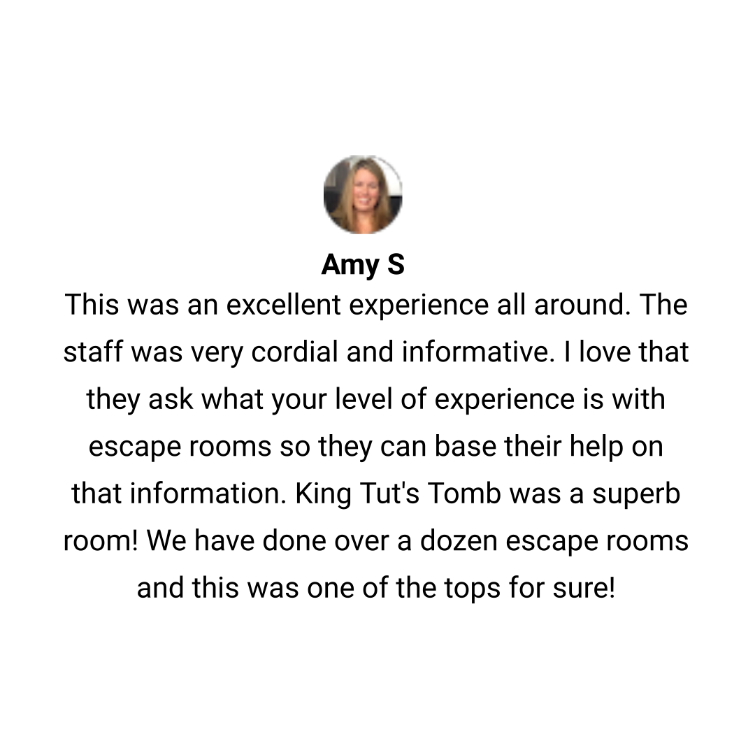 Can you and your team make your way into the secret burial chamber of the famed tomb of King Tutankhamun and secure the Jewel of the Nile nicknamed ‘The Eye of Horus’ before the time runs out? Keep your wits about you and avoid the Pharaoh's curse!